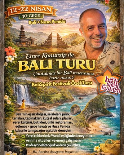 Emre Konuralp ile Bali ‘nin tüm doğal güzelliklerini, tapınaklarını, şelalelerini, pirinç tarlalarını, yerel kültürünü, güç merkezlerini, plajlarını, restoranlarını, butiklerini ve alışveriş noktalarını, eğlence hayatını birlikte keşfettiğin, şifalandığın, değişip dönüştüğün, eğlendiğin ve unutulmaz anılar ile ve yepyeni bir enerji ile geri döndüğün muhteşem bir yolculuk seni bekliyor.